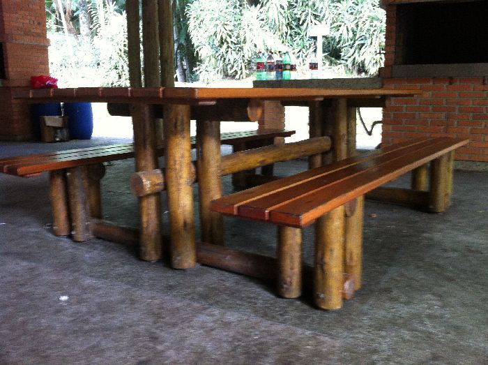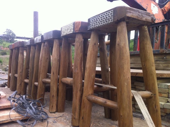 Diverso modelos de bancos, em madeira tratada para uso interno ou externo, com alta durabilidade contra cupins e apodrecimento.
